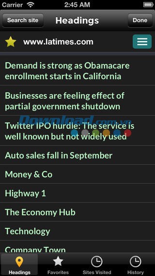 QuickSurfer Browser chuyển danh sách các đường dẫn và tiêu đề trang vào thực đơn iPhone gốc. Tìm kiếm các mục của trang web tin tức một cách dễ dàng. Khám phá những trang nổi bật trên cùng một trang web.
