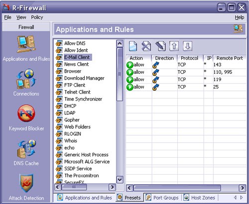 Ngoài ra, R-Firewall còn có thể chặn các email đã được cài đặt các tính năng gây hại.