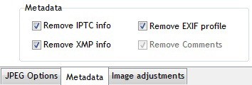 Phần mềm có thể loại bỏ các thông tin liên quan đến hình ảnh như ngày chụp, loại máy ảnh để giảm dung lượng. Nếu bạn muốn giữ lại những thông tin này, hãy chọn tab Metadata, bỏ chọn các tùy chọn tương ứng và nhấn OK.