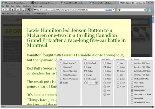 Readable 0.2 là công cụ cho phép bạn thay đổi giao diện hiển thị của văn bản trên mọi trang web, bao gồm cả font chữ, màu sắc và nền.