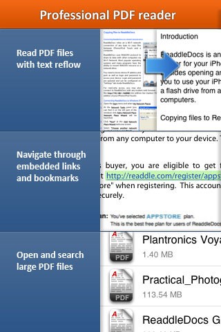 Bên cạnh các định dạng văn bản phổ biến, ReaddleDocs còn có thể mở và đọc các file thuộc bộ ứng dụng văn phòng iWork của Apple, cũng như các định dạng hình ảnh như JPG và TIF.