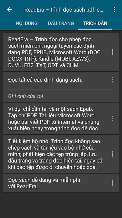 Trích dẫn: Đánh dấu các đoạn văn bản trong sách và tài liệu, đồng thời thêm các ghi chú cá nhân vào phần văn bản đã chọn.