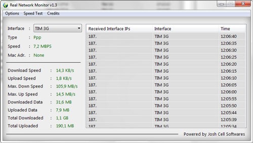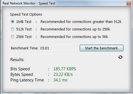 Ngoài ra, Real Network Monitor còn tích hợp chức năng kiểm tra tốc độ kết nối Internet hiện tại của máy tính. Để sử dụng, nhấn nút Speed Test trên menu của phần mềm.