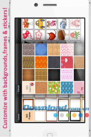 Lựa chọn từ nhiều khung hình và sticker khác nhau để tùy biến ảnh.