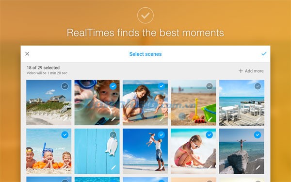 Thiết kế câu chuyện RealTimes: Người dùng có thể tạo ra những thước phim độc đáo từ ảnh và video có sẵn trong thư viện của mình.