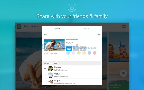 Album ảnh trực tuyến: Chia sẻ trọn bộ album ảnh của bạn với bạn bè và người thân. Họ sẽ được thông báo mỗi khi album có thêm ảnh mới.