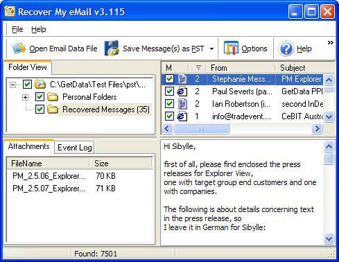 Phần mềm cho phép khôi phục các tệp đính kèm email cùng với danh sách liên lạc đã mất.