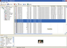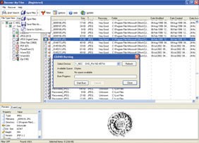 Ô thông tin bên dưới bên trái hiển thị thông tin về lần tìm kiếm cuối cùng hoặc các thuộc tính của tập tin được chọn. Bạn có thể chọn các tập tin riêng lẻ để khôi phục hoặc sử dụng phím Shift để chọn nhiều tập tin cùng lúc. Ngoài ra, bạn có thể kích hoạt lại các hộp kiểm trên danh sách các loại tập tin ở cột bên trái.