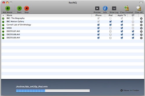 ReelNQ cung cấp khả năng tự động chuyển đổi nhiều file video cùng lúc. Quá trình thêm phim vào danh sách chuyển đổi trở nên đơn giản nhờ tính năng kéo và thả, sau đó người dùng chỉ cần khởi động quá trình.