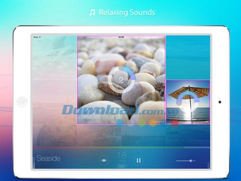 Relaxia Free for iOS hỗ trợ phát đồng thời nhiều âm thanh, cho phép bạn tạo ra những hợp âm độc đáo. Bạn có thể tùy chỉnh thời gian phát nhạc từ 5 đến 14 phút, đồng thời thiết lập chế độ hẹn giờ để tắt nhạc sau một khoảng thời gian nhất định.