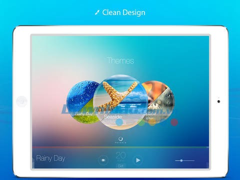 Dù thị trường hiện tại có nhiều ứng dụng âm thanh hỗ trợ ngủ ngon và thư giãn, Relaxia Free phiên bản iOS vẫn gây ấn tượng mạnh mẽ nhờ giao diện bắt mắt cùng các tính năng tiện lợi, dễ thao tác. Ứng dụng cung cấp 6 chủ đề âm thanh, mỗi chủ đề bao gồm 8 âm thanh khác nhau. Người dùng có thể đồng thời phát nhiều file âm thanh và tùy chỉnh âm lượng để phù hợp với không gian thư giãn cá nhân, đồng thời cài đặt chế độ hẹn giờ tắt nhạc để ứng dụng tự động dừng phát vào buổi sáng.