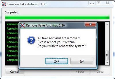 Nhấn vào Yes để khởi động lại Windows và gỡ bỏ hoàn toàn các phần mềm giả danh trên hệ thống, nếu có.