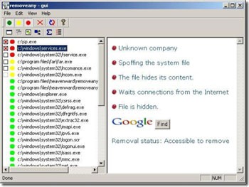 RemoveAny khởi động cùng Windows và giám sát tất cả các tiến trình đang chạy và driver.