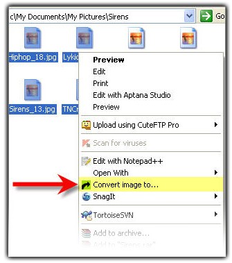 Sau khi quá trình cài đặt hoàn tất, bạn chỉ cần nhấp chuột phải vào file ảnh mong muốn. Một menu ngữ cảnh sẽ xuất hiện, với tùy chọn mới Convert image to… được thêm vào. (Để xử lý nhiều ảnh cùng lúc, hãy chọn nhiều file trước khi nhấp chuột phải).