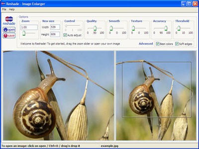Reshade Image Enlarger (Reshade) là phần mềm phóng to ảnh chuyên nghiệp, giúp tăng kích thước ảnh từ độ phân giải trung bình đến cao mà vẫn giữ được chất lượng hình ảnh, tránh hiện tượng nhòe hoặc vỡ ảnh.