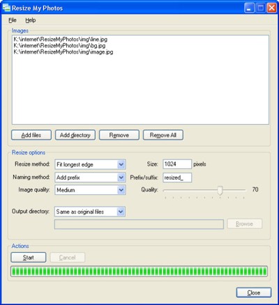 Nhấn vào nút Start để bắt đầu quá trình thay đổi kích thước ảnh. Thời gian xử lý sẽ phụ thuộc vào số lượng ảnh.