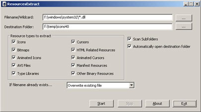 ResourcesExtract là một công cụ miễn phí, có dung lượng nhỏ, được thiết kế để kiểm tra và trích xuất nội dung từ các tập tin dl, ocx và exe. Nó có khả năng giải nén toàn bộ các tài nguyên được nhúng bên trong, bao gồm hình ảnh bitmap, biểu tượng, con trỏ, các tập tin HTML và video AVI.