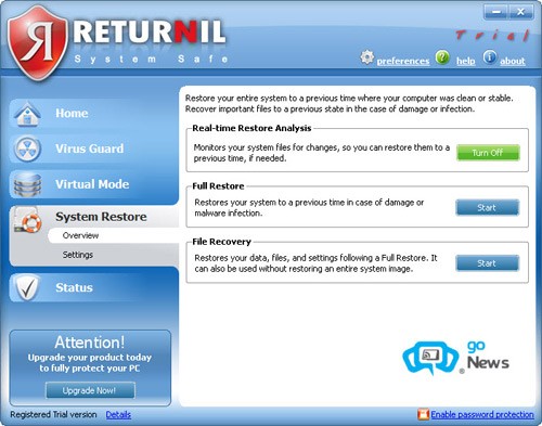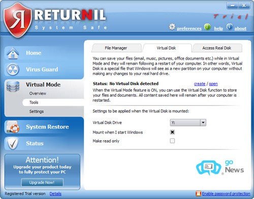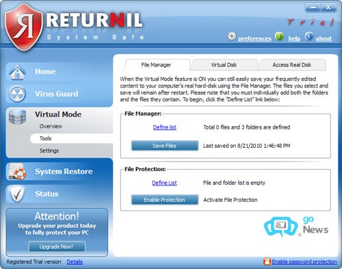Với Returnil System Safe 2011, người dùng có thể yên tâm hơn trước các mối đe dọa từ virus và những sự cố bất ngờ của hệ điều hành Windows.
