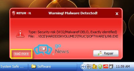 Khi phát hiện phần mềm độc hại, một thông báo màu đỏ sẽ xuất hiện trên khay hệ thống. Lúc này, bạn có thể nhấn Repair để loại bỏ malware ngay lập tức. Trong trường hợp chương trình nhận diện sai, hãy nhấn Read more, đánh dấu tập tin là an toàn, và chọn Exclude.