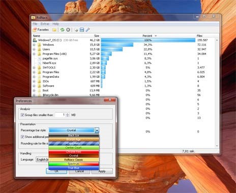 RidNacs là công cụ được thiết kế để phân tích dung lượng đĩa một cách nhanh chóng và chính xác. Ứng dụng này có khả năng quét nhiều loại ổ đĩa, bao gồm ổ đĩa cứng bên trong máy tính, ổ đĩa mạng, hoặc thậm chí chỉ một thư mục cụ thể.