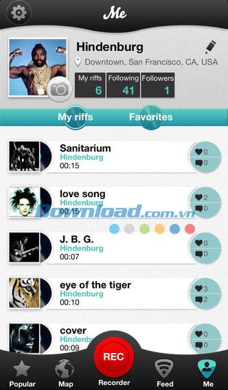 Tìm kiếm và kết nối với những nghệ sĩ thực thụ ở gần bạn. Riffer for iOS cung cấp nhiều công cụ điều chỉnh âm nhạc, cho phép người dùng lựa chọn các phương pháp yêu thích như tiêu chuẩn, drop-d, drop-c, hoặc hal step down... và bắt đầu chơi hoặc tùy chỉnh âm thanh guitar theo ý muốn. Với Riffer for iOS, bạn có thể sử dụng bất kỳ nhạc cụ nào để tạo ra những hợp âm độc đáo.