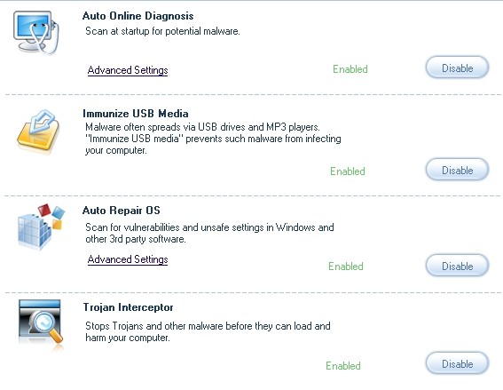 Các chức năng thông thường của RPD có thể được truy cập trực tiếp từ cửa sổ Home hoặc thông qua trình hướng dẫn One click action, cho phép quét virus, spyware và khắc phục lỗi chỉ với một cú nhấp chuột.