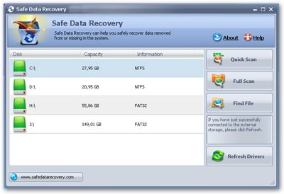 Safe Data Recovery là phần mềm chuyên dụng để khôi phục dữ liệu bị mất trên ổ đĩa cứng, bao gồm cả trường hợp ổ đĩa đã bị định dạng với các định dạng FAT16/FAT32/NTFS/NTFS5.