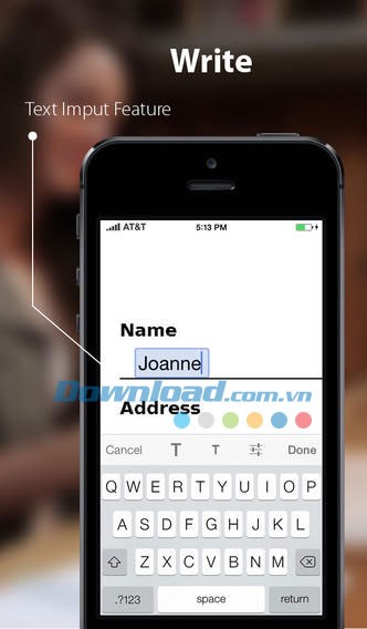 Một trong những điểm nổi bật của ScanWritr for iOS trên App Store là tính năng này. Ứng dụng không chỉ là một bộ scan và chuyển đổi PDF chất lượng cao mà còn cho phép điền thông tin vào các mẫu kỹ thuật số. Sau khi quét các mẫu giấy hoặc mở văn bản từ thiết bị, người dùng có thể nhập dữ liệu vào các trường trống bằng tính năng nhập liệu thông minh của ScanWritr for iOS.