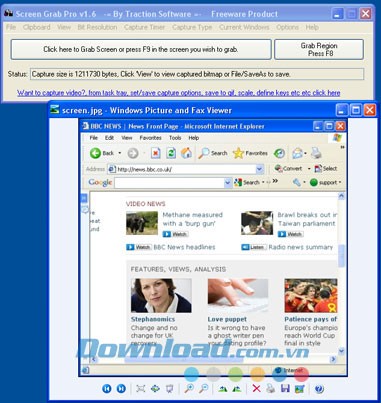 Tương tự, chọn Active Window từ trình đơn Capture Type, rồi nhấp vào nút Click here to Grab Screen or press F9 in the screen you wish to grab để chụp cửa sổ đang hoạt động.