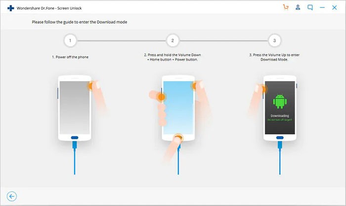 Bước 4: Tiếp theo, đưa điện thoại vào Download Mode. Hãy tắt nguồn điện thoại hoàn toàn, sau đó đồng thời nhấn và giữ nút giảm âm lượng, nút nguồn và nút home (nếu có) theo hướng dẫn cụ thể.