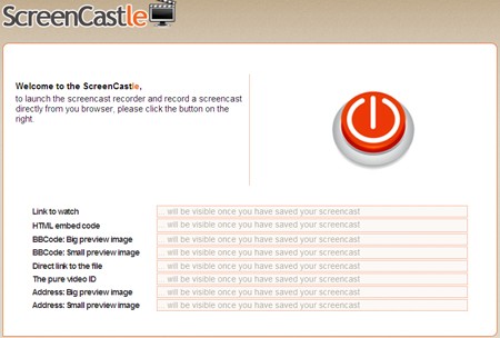Screencastle là một lựa chọn đáng cân nhắc nếu bạn đang tìm kiếm một công cụ quay phim màn hình trực tuyến. Giao diện của phần mềm này được thiết kế rất trực quan, giúp người dùng dễ dàng thao tác. Để bắt đầu quay, chỉ cần nhấn vào nút khởi động màu đỏ nổi bật ở phía bên phải.