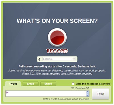 Screenjelly là một dịch vụ web miễn phí, cho phép bạn ghi lại mọi hoạt động trên màn hình máy tính, đồng thời thu âm giọng nói. Điều này giúp bạn dễ dàng chia sẻ các nội dung này dưới dạng video với bạn bè và người thân qua các nền tảng như Twitter, Facebook hoặc email.