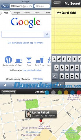 Điểm nổi bật của ứng dụng là khả năng chụp lại hình ảnh của bất kỳ ai cố gắng xâm phạm dữ liệu riêng tư của bạn. Đồng thời, ứng dụng sẽ gắn thẻ địa điểm nơi sự việc xảy ra và lưu trữ thông tin này trong một tệp tin.