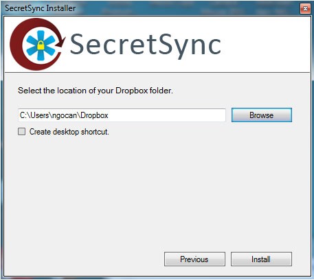 Đầu tiên, bạn cần tải SecretSync và chạy file cài đặt trên máy tính đã cài đặt Dropbox (yêu cầu máy tính đã cài đặt Java Runtime Environment và .NET Framework 2.0 trở lên).