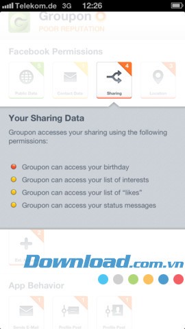 Bạn có thể dễ dàng xác định những thông tin cá nhân mà ứng dụng Facebook đang truy cập, cũng như các thao tác mà ứng dụng đó có thể thực hiện.