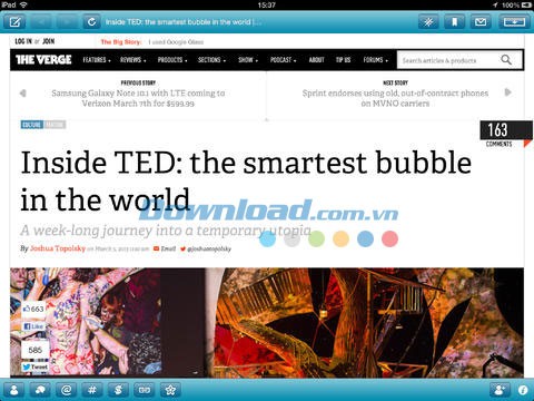 Khi sử dụng trên màn hình iPad lớn, ứng dụng sẽ chia nhỏ văn bản web thành các ô, giúp việc đọc trở nên thoải mái hơn.