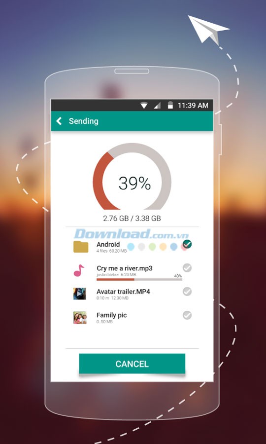Ứng dụng cho phép truyền tải và chia sẻ đa dạng các loại dữ liệu, bao gồm hình ảnh, ứng dụng, video, nhạc, thư mục, tài liệu và các tập tin thuộc mọi định dạng khác.