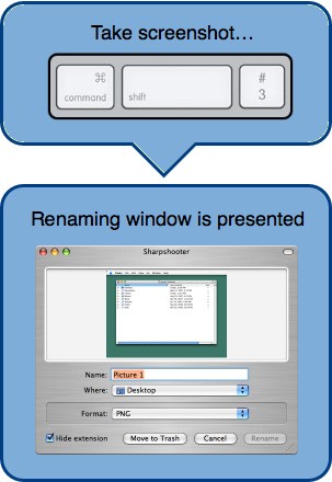 Sharpshooter là một tiện ích nhỏ gọn, hỗ trợ người dùng quản lý các ảnh chụp màn hình một cách thuận tiện. Mỗi khi bạn tạo một bản chụp màn hình trên hệ điều hành Mac OS X bằng tổ hợp phím Command-Shift-3 (hoặc các tùy chọn khác), Sharpshooter sẽ hiển thị một cửa sổ để bạn có thể xem trước hình ảnh và lựa chọn các thao tác phù hợp.