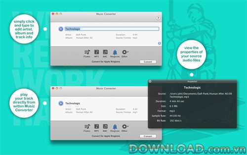 Phần mềm tương thích hoàn toàn với iTunes, đồng thời cung cấp khả năng chỉnh sửa thông tin chi tiết của album, nghệ sĩ và bài hát.