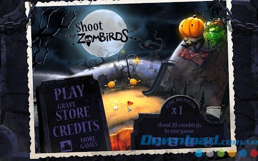 Shoot The Zombirds mang đến lối chơi thú vị, nơi bạn sẽ vào vai một chiến binh dũng cảm, có nhiệm vụ tiêu diệt lũ chim ma và thây ma đang đe dọa cậu bé Pumpkids. Âm thanh ghê rợn kết hợp cùng hình ảnh nghĩa trang u ám sẽ tăng thêm sự cuốn hút và kịch tính cho trò chơi.