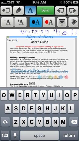 Sign-N-Send Free tương thích với hầu hết các định dạng tài liệu phổ biến như PDF, MS Office (Word, Excel, PowerPoint) và các định dạng hình ảnh. Việc viết diễn ra trực tiếp trên màn hình, không phải chèn thêm tem. Bạn có thể gửi nhiều tài liệu đến cùng một địa chỉ email.