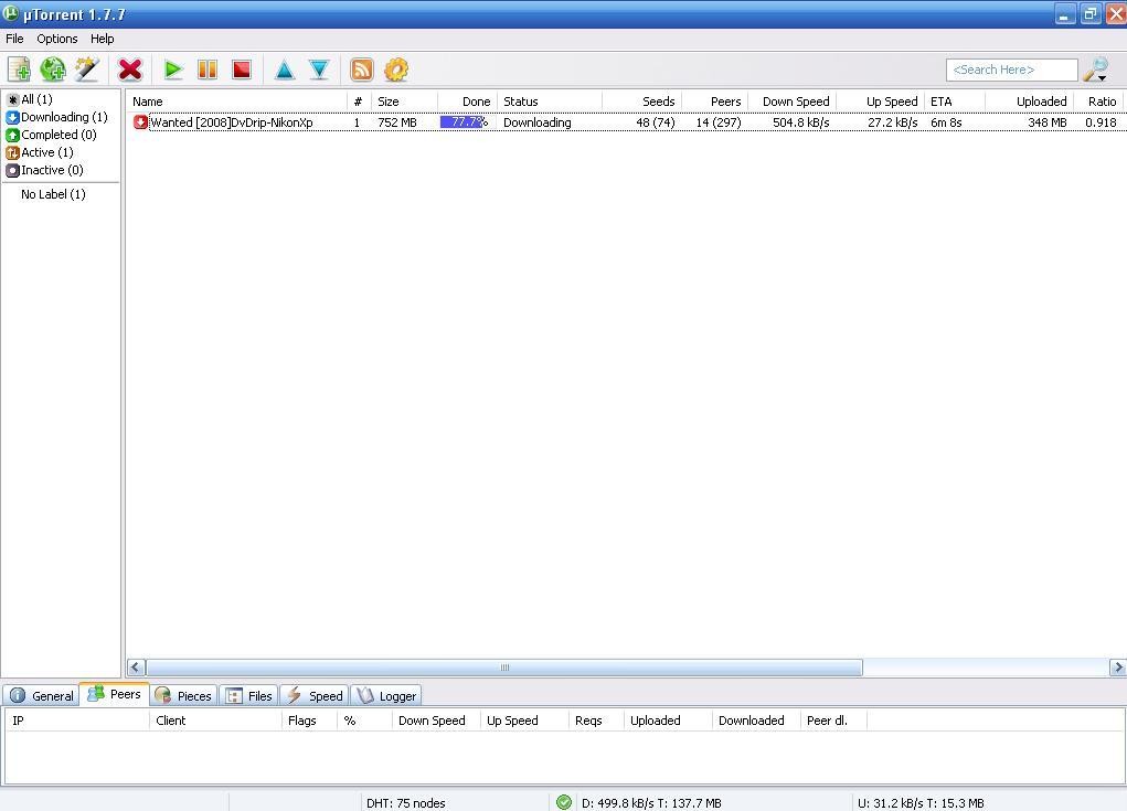 Thử nghiệm với chương trình Utorrent sau khi mở port cho thấy tốc độ tải xuống đã tăng từ 185 Kb/s lên 500 Kb/s.