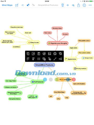 Ứng dụng này đóng vai trò như một công cụ bản đồ tư duy mạnh mẽ, cho phép bạn tận dụng điện thoại thông minh và máy tính bảng iDevice để tạo ra một thiết bị thảo luận tự do, thu thập ý tưởng và xây dựng cấu trúc suy nghĩ một cách hiệu quả.