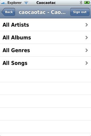 Bạn có thể dễ dàng lựa chọn bài hát theo nhiều tiêu chí khác nhau, bao gồm nghệ sĩ (Artists), album, thể loại (Genres) và bài hát (Songs), được sắp xếp theo thứ tự bảng chữ cái để thuận tiện cho việc tìm kiếm.
