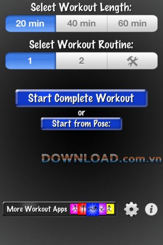 Ứng dụng cung cấp ba cấp độ luyện tập với thời lượng khác nhau: 20 phút, 40 phút và 60 phút, đáp ứng nhu cầu của mọi đối tượng.