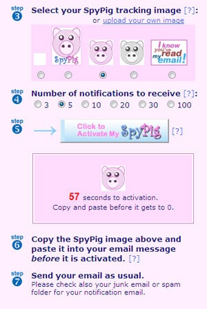 Sau đó, bạn cần chọn một hình ảnh để chèn vào email của mình trong phần "Select your SpyPig tracking image". Nếu bạn không hài lòng với các hình ảnh có sẵn, hãy nhấp vào liên kết "upload your own image" để tải lên hình ảnh theo ý thích (bạn cần đăng ký tài khoản để sử dụng tính năng này).