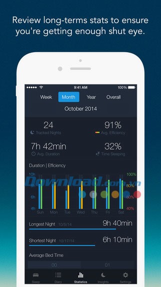 Hoàn toàn miễn phí trên nền tảng iOS, Sleep Better cung cấp cho bạn các công cụ hữu ích như công cụ theo dõi chu kỳ giấc ngủ, đồng hồ báo thức thông minh và nhật ký giấc ngủ điện tử. Bạn có thể ghi lại thời gian ngủ, nội dung giấc mơ và đánh giá chất lượng giấc ngủ của mình.