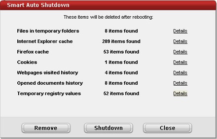 Nhấn vào liên kết Details để xem thông tin chi tiết về từng file. Cuối cùng, chọn nút Shutdown để chương trình vừa thực hiện việc dọn dẹp hệ thống, vừa tắt máy tính của bạn.