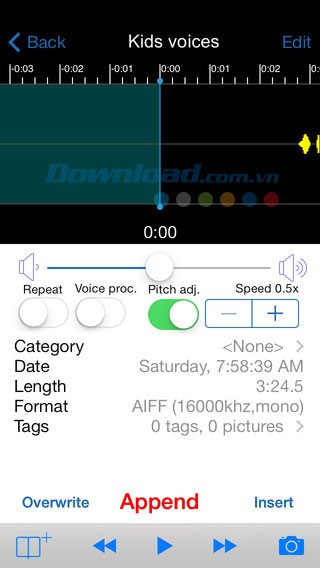 Phát lại file ghi âm với nhiều tốc độ khác nhau và điều chỉnh cao độ âm thanh theo ý muốn.