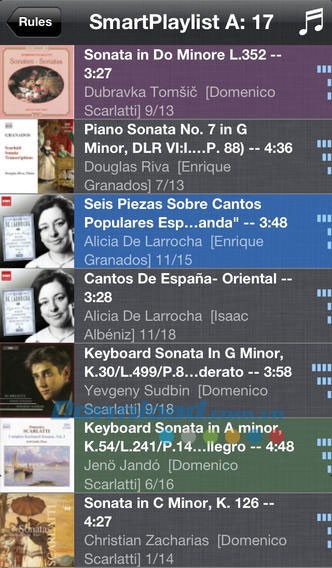 Ví dụ, quy luật "Thể loại bao gồm blu OR zz" sẽ tạo ra một danh sách nhạc chứa tất cả các bài hát thuộc phong cách Blue và Jazz. Toàn bộ quá trình diễn ra nhanh chóng và dễ dàng.